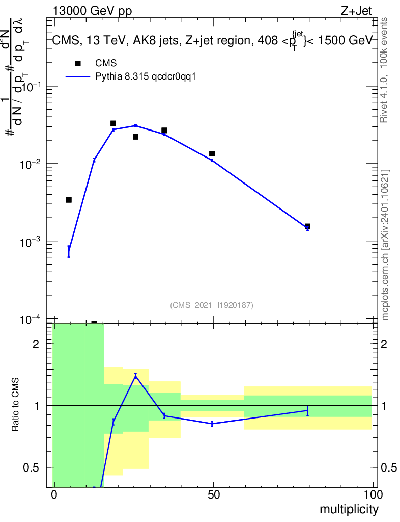 Lines: data, pythia8 8.315 qcdcr0qq1 |
