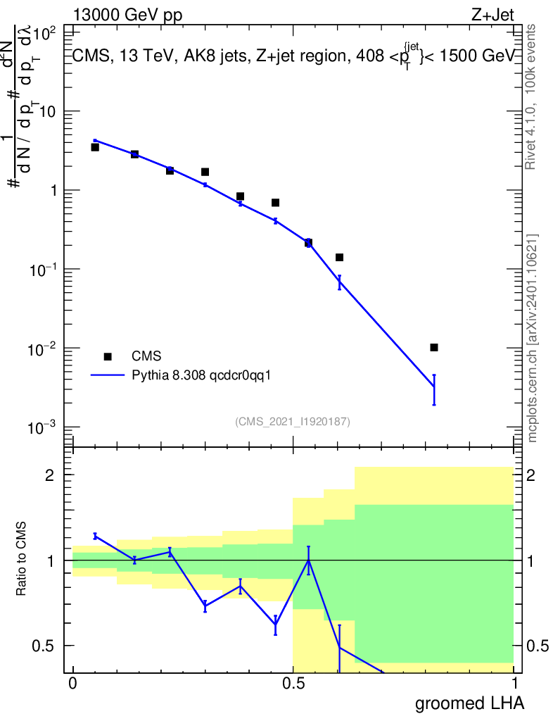 Lines: data, pythia8 8.308 qcdcr0qq1 |