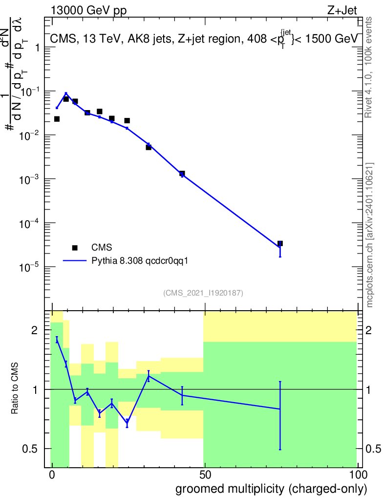 Lines: data, pythia8 8.308 qcdcr0qq1 |