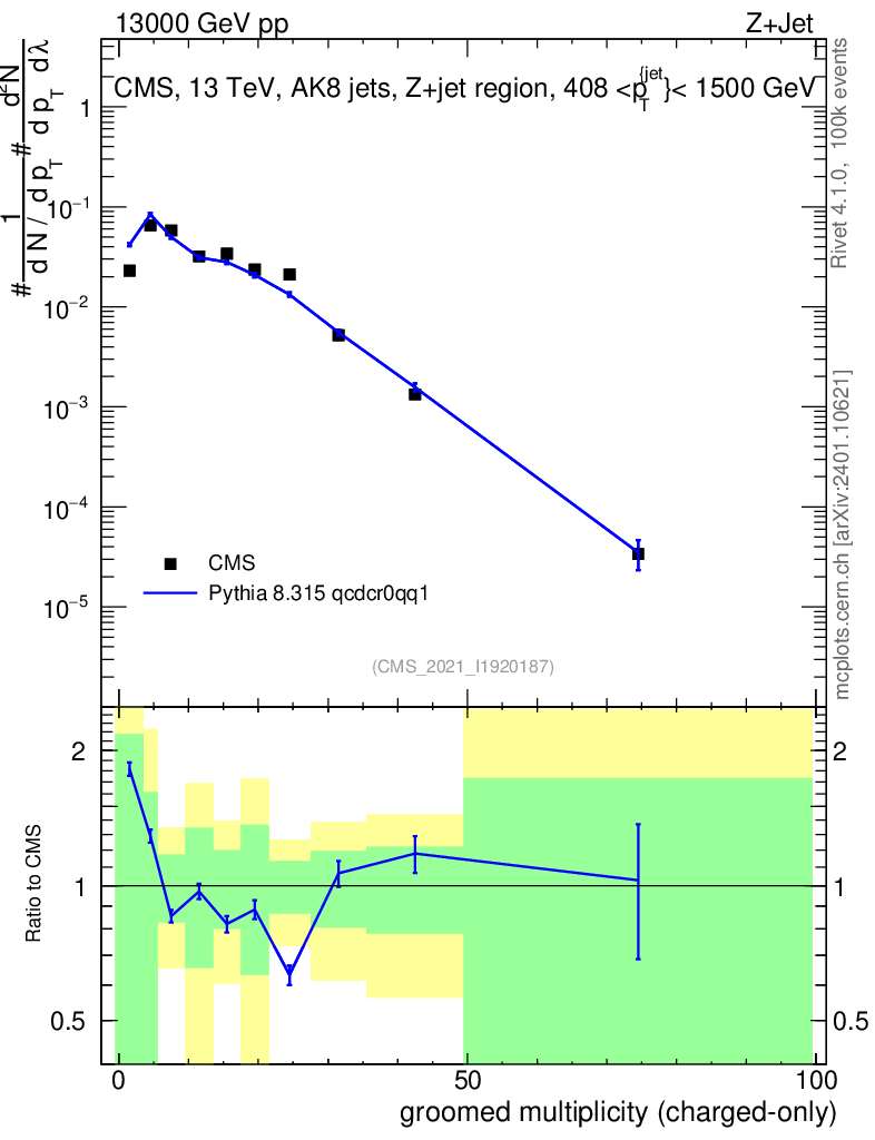 Lines: data, pythia8 8.315 qcdcr0qq1 |