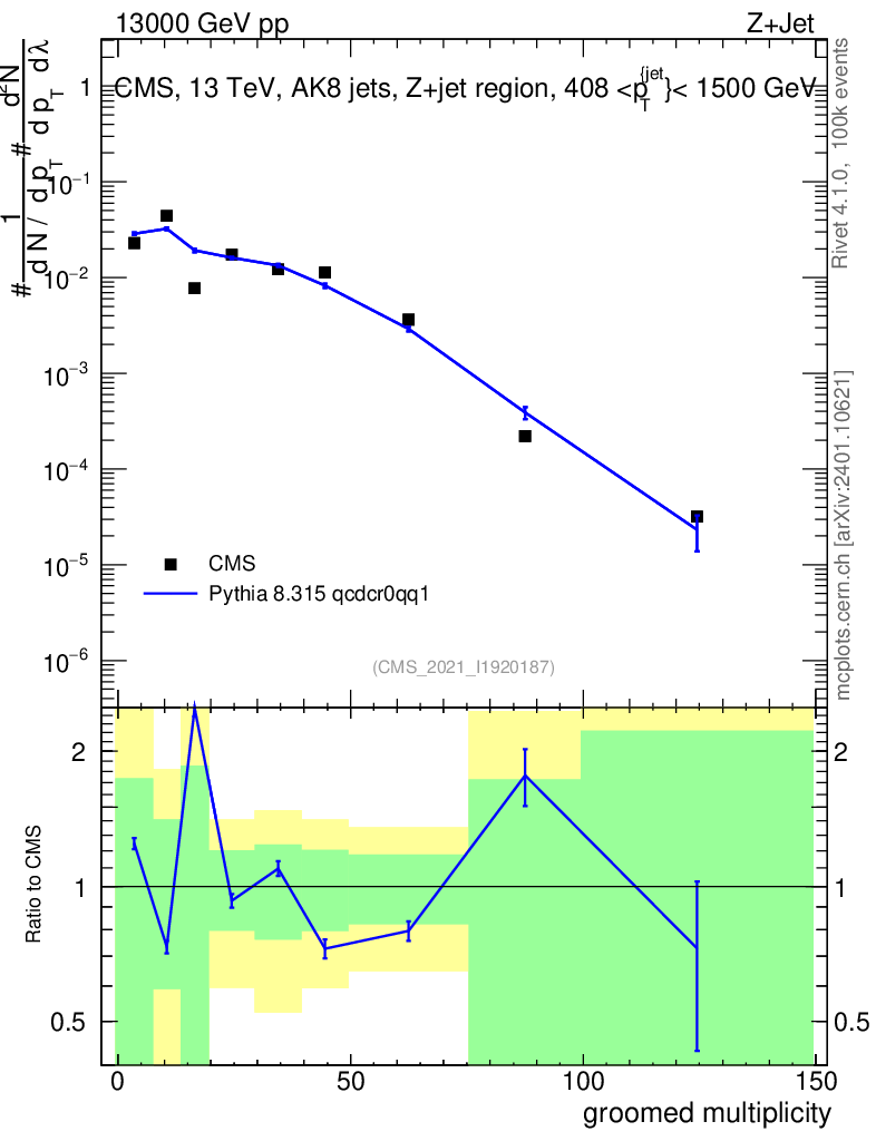 Lines: data, pythia8 8.315 qcdcr0qq1 |