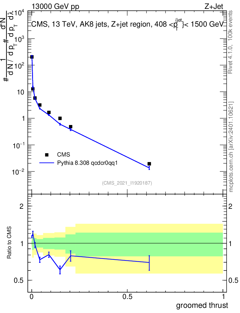 Lines: data, pythia8 8.308 qcdcr0qq1 |