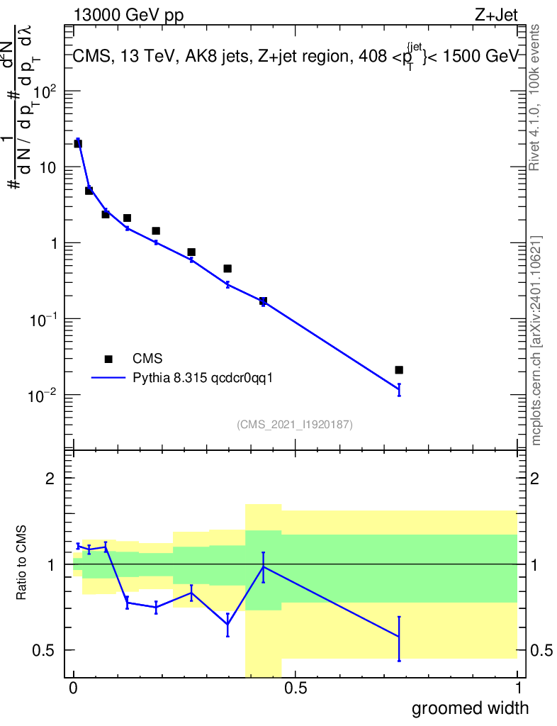 Lines: data, pythia8 8.315 qcdcr0qq1 |