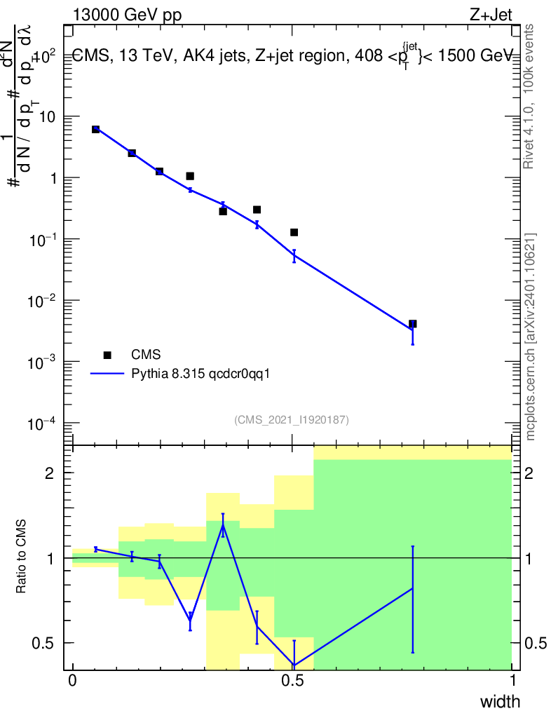 Lines: data, pythia8 8.315 qcdcr0qq1 |