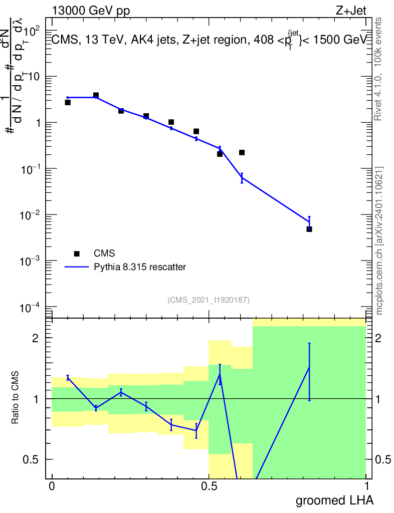 Lines: data, pythia8 8.315 rescatter |