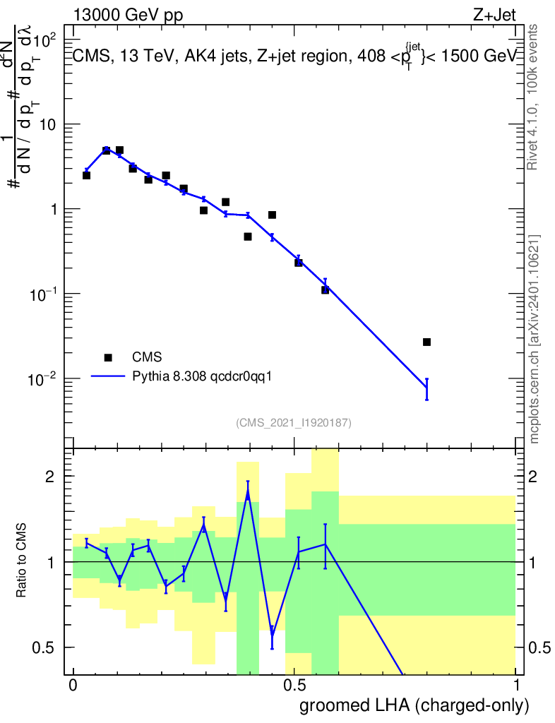 Lines: data, pythia8 8.308 qcdcr0qq1 |