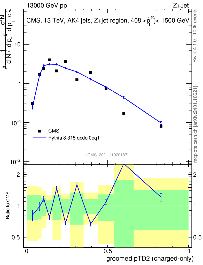 Lines: data, pythia8 8.315 qcdcr0qq1 |