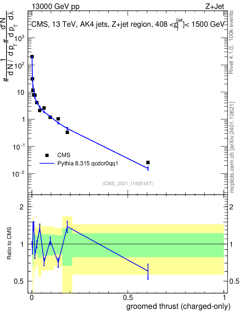 Lines: data, pythia8 8.315 qcdcr0qq1 |
