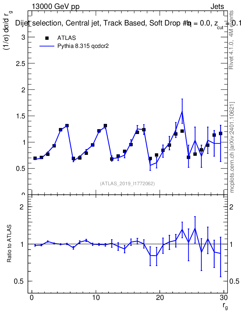 Lines: data, pythia8 8.315 qcdcr2 |