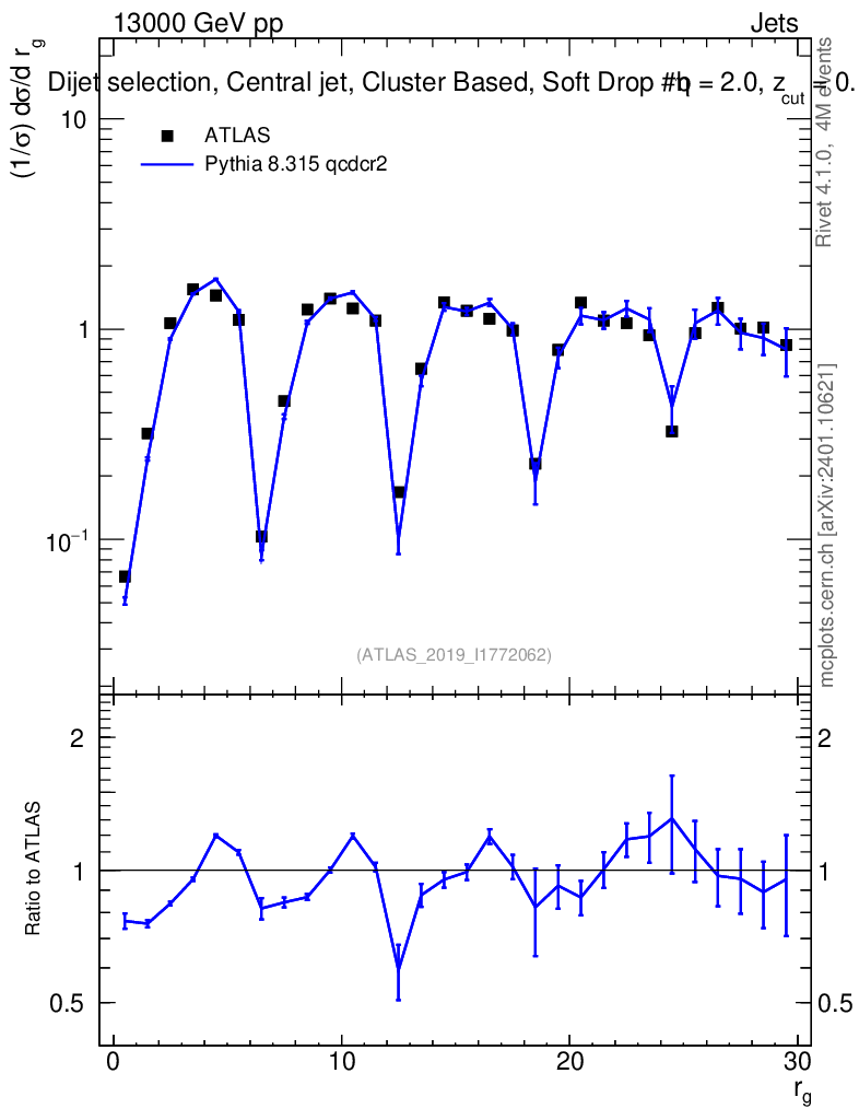 Lines: data, pythia8 8.315 qcdcr2 |