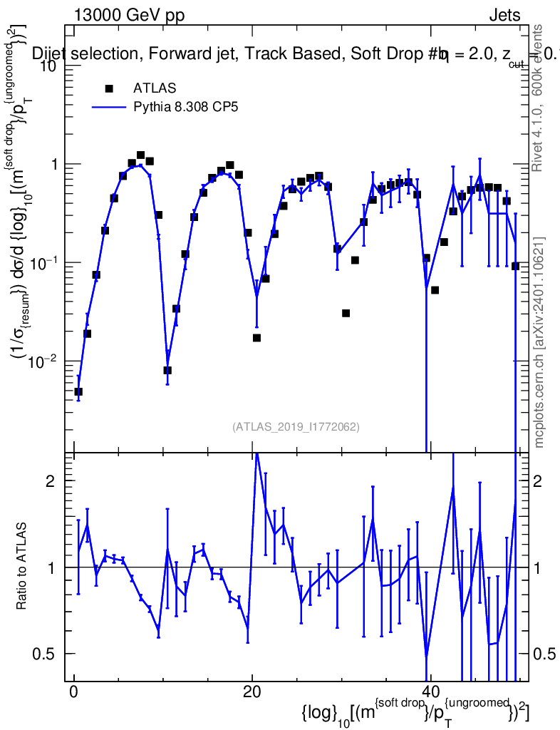 Lines: data, pythia8 8.308 CP5 |