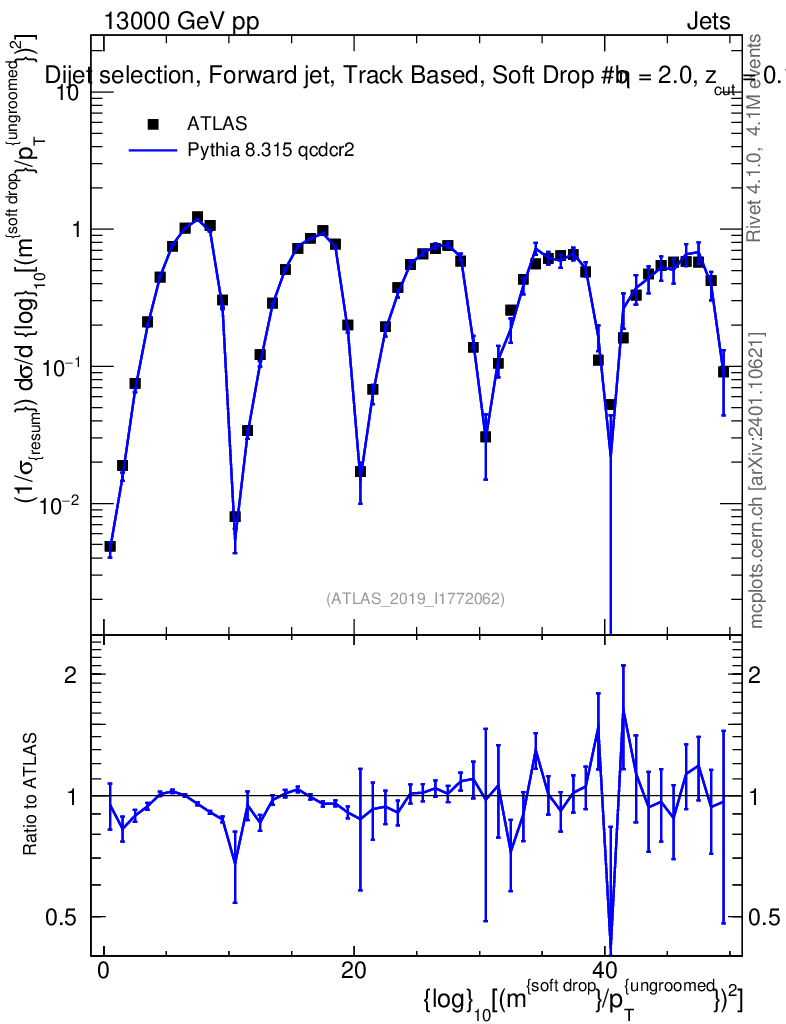 Lines: data, pythia8 8.315 qcdcr2 |