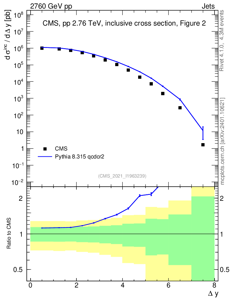 Lines: data, pythia8 8.315 qcdcr2 |