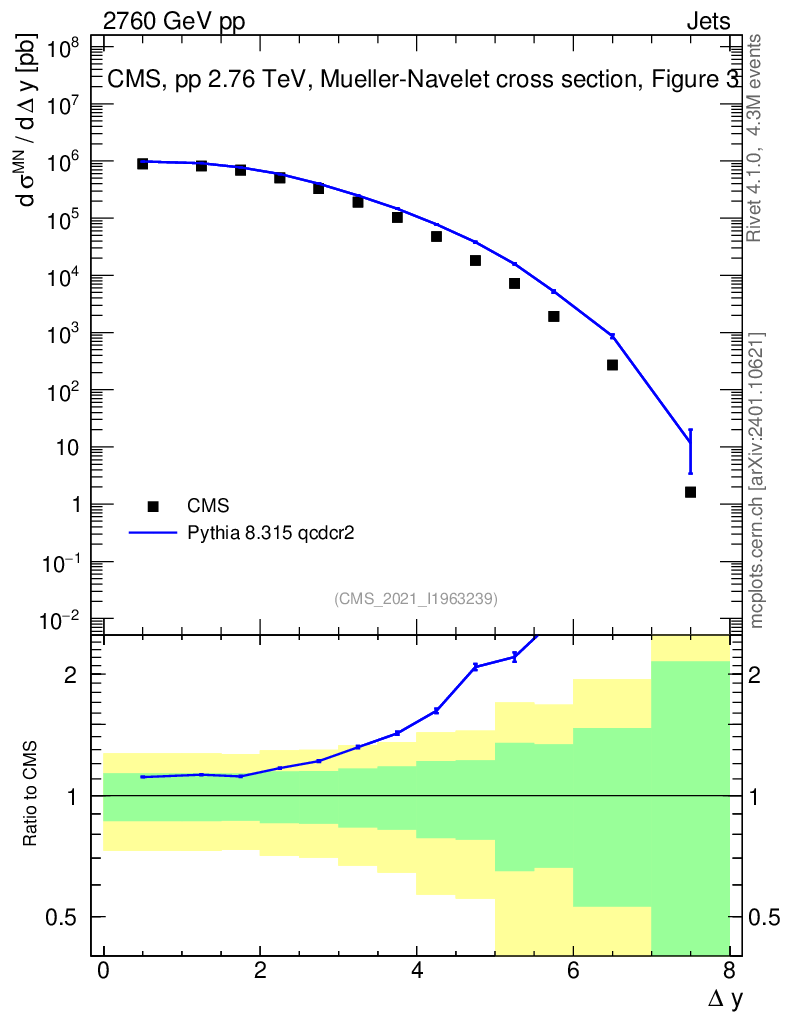 Lines: data, pythia8 8.315 qcdcr2 |