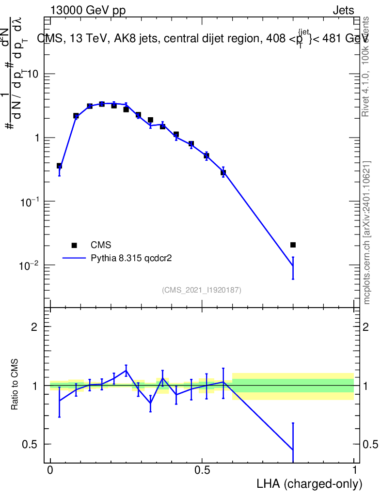 Lines: data, pythia8 8.315 qcdcr2 |