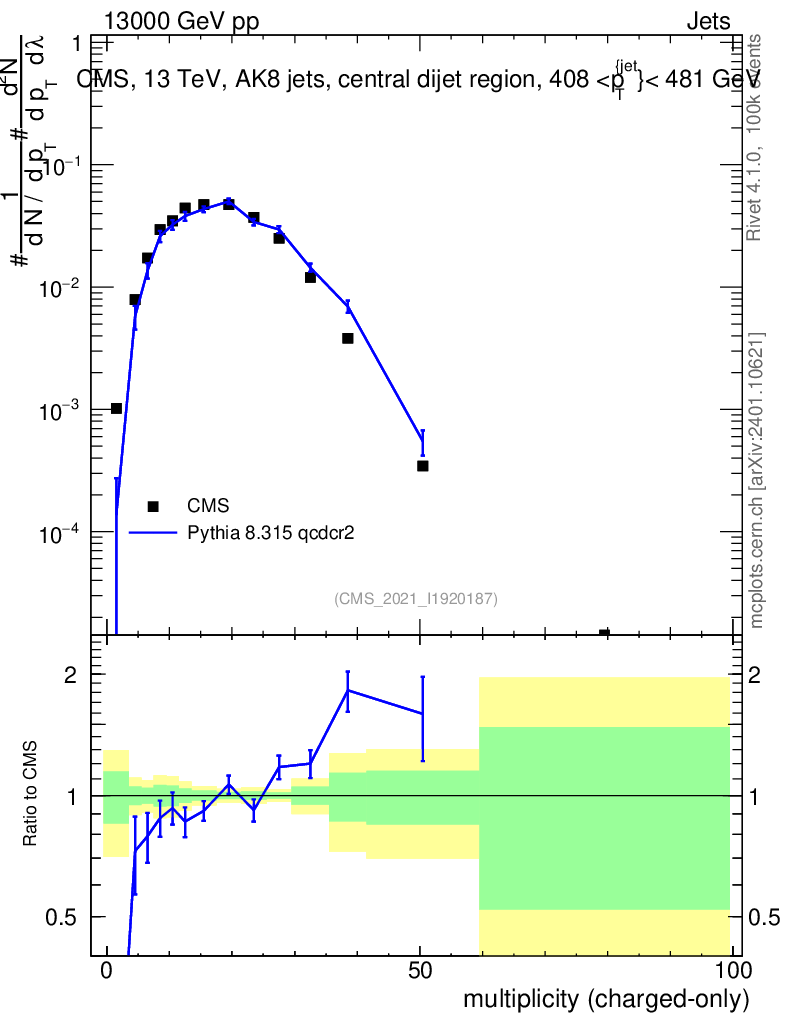 Lines: data, pythia8 8.315 qcdcr2 |