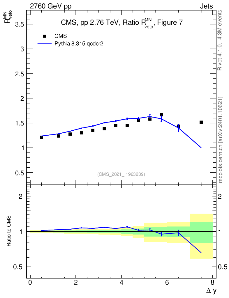 Plot of jj.dy_jj.dy in 2760 GeV pp collisions