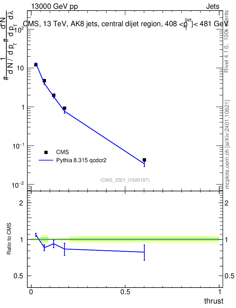 Lines: data, pythia8 8.315 qcdcr2 |