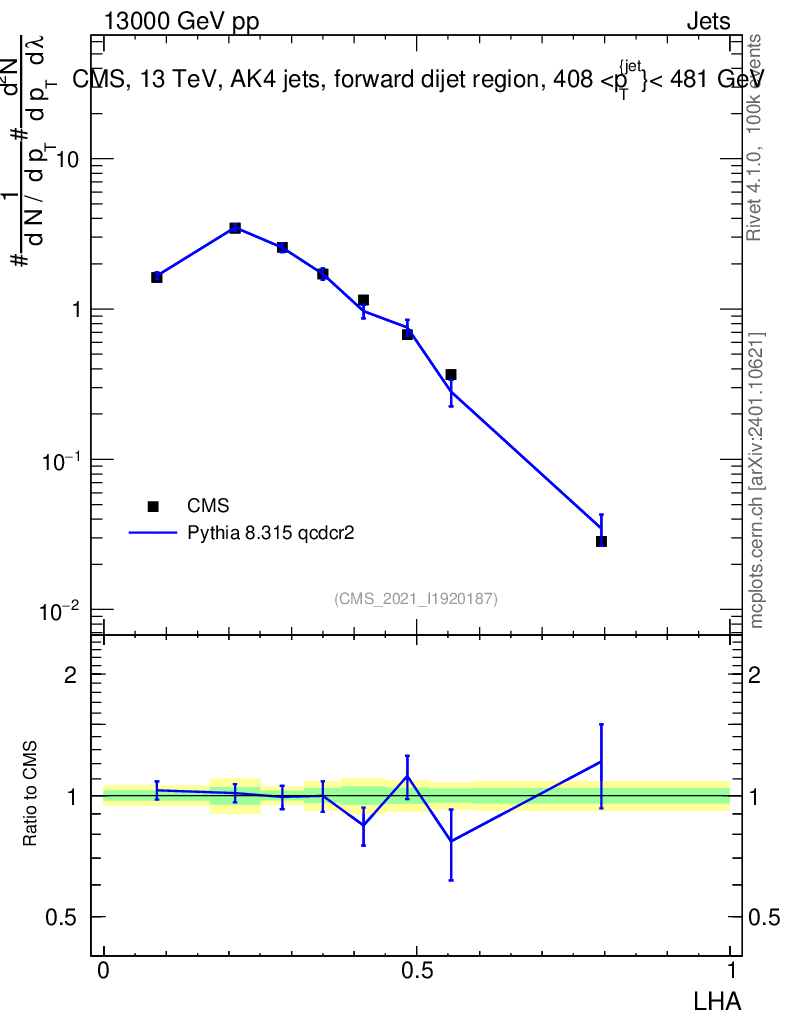 Lines: data, pythia8 8.315 qcdcr2 |