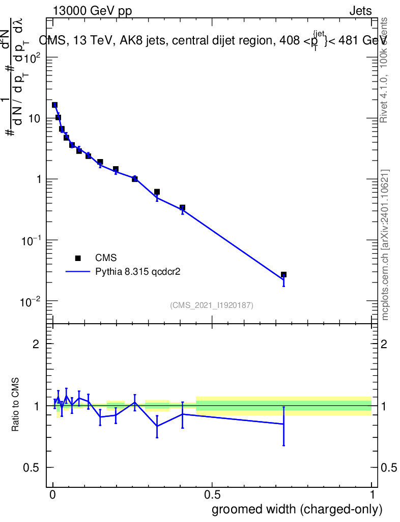 Lines: data, pythia8 8.315 qcdcr2 |