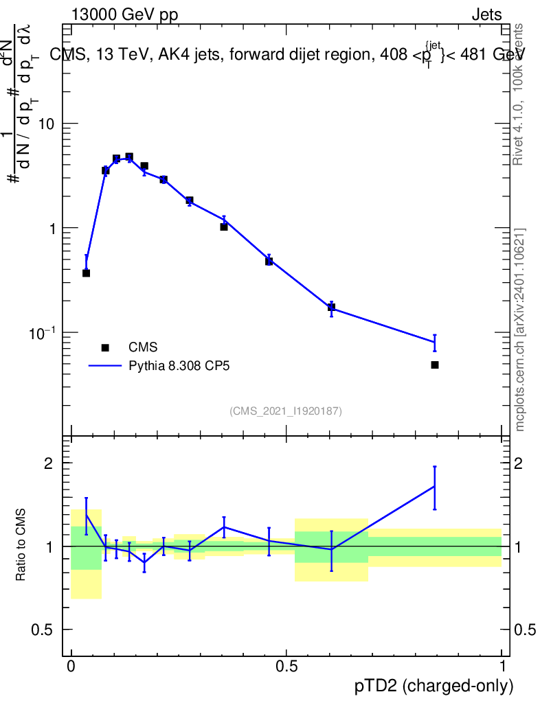 Lines: data, pythia8 8.308 CP5 |