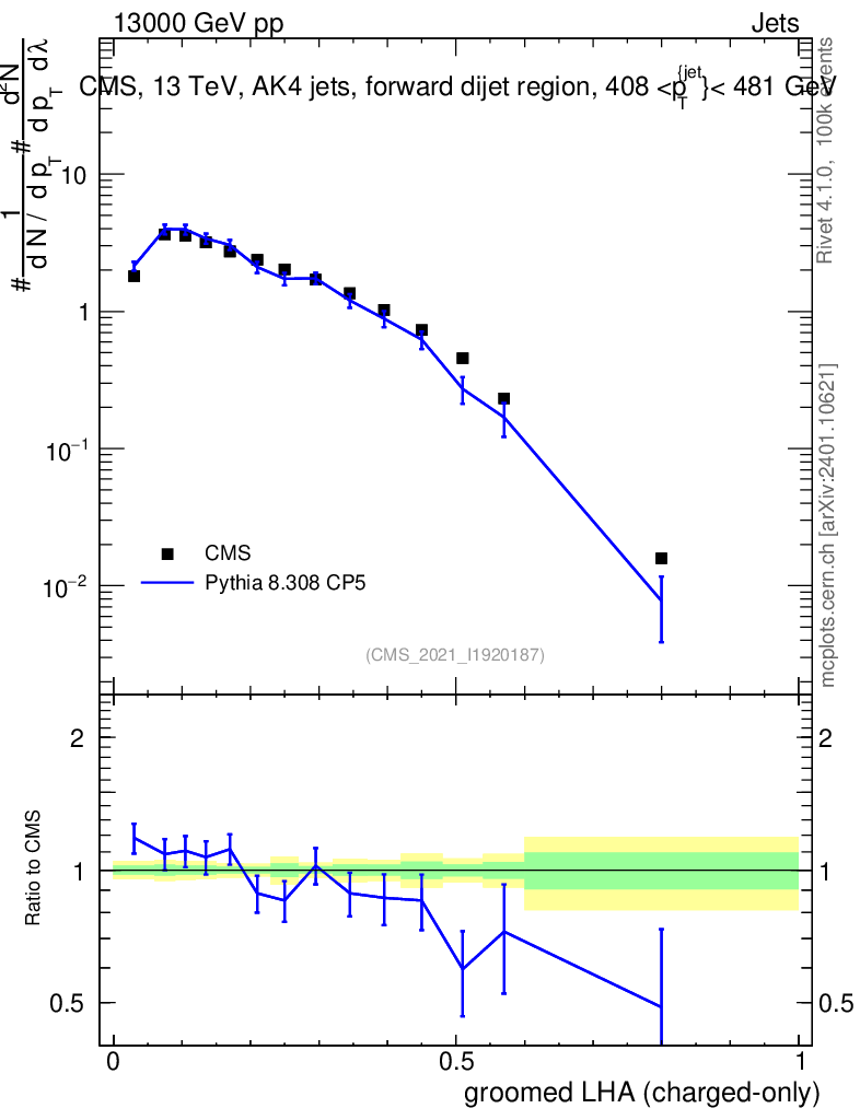 Lines: data, pythia8 8.308 CP5 |