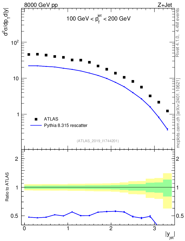 Lines: data, pythia8 8.315 rescatter |