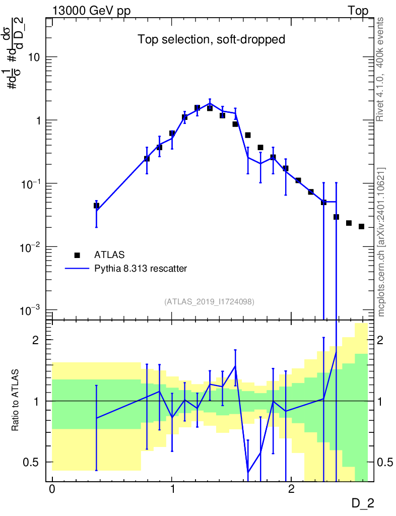 Lines: data, pythia8 8.313 rescatter |