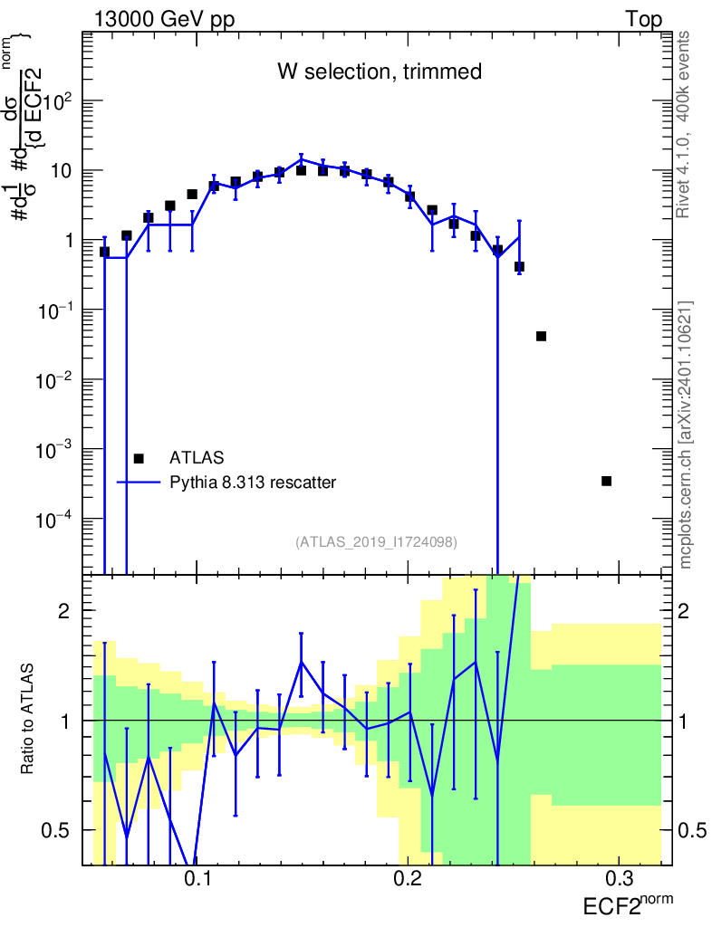 Lines: data, pythia8 8.313 rescatter |