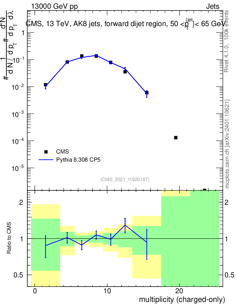 Lines: data, pythia8 8.308 CP5 |