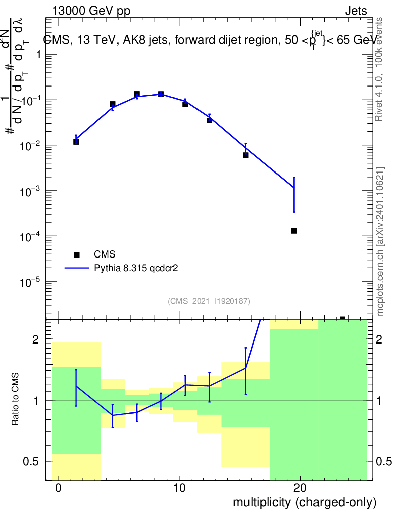 Lines: data, pythia8 8.315 qcdcr2 |