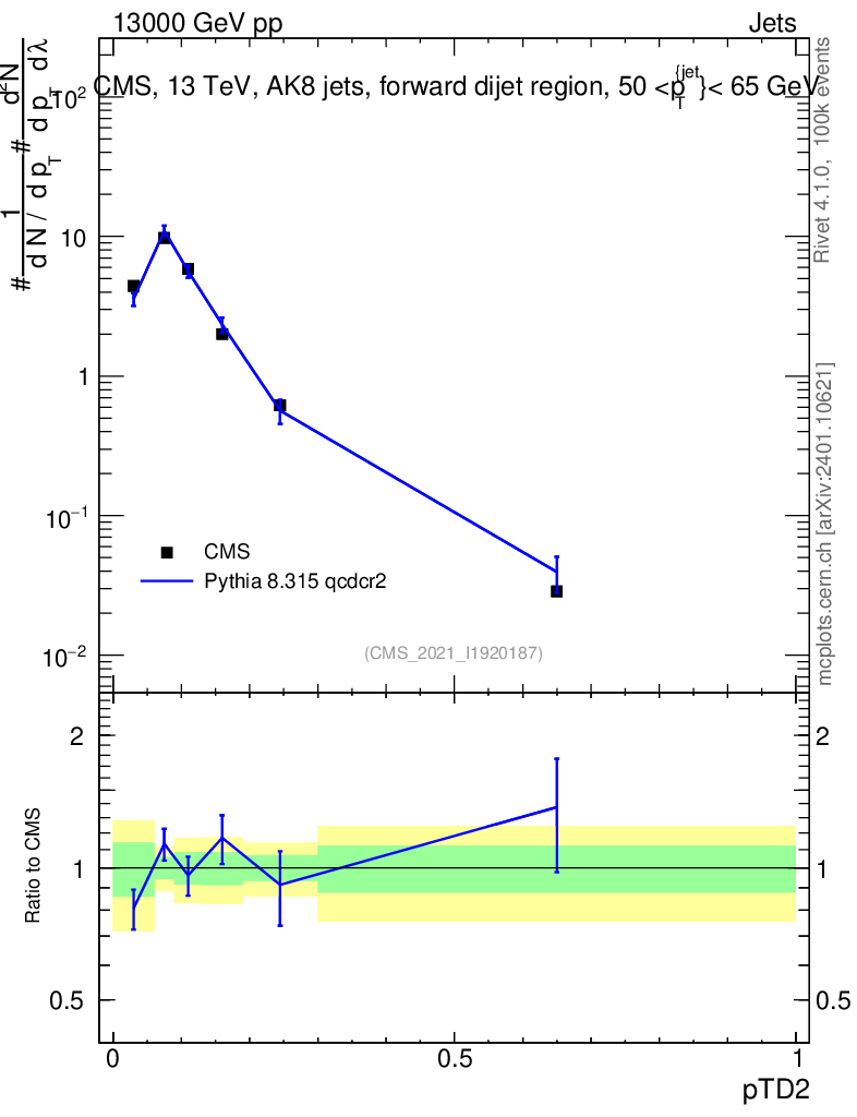 Lines: data, pythia8 8.315 qcdcr2 |