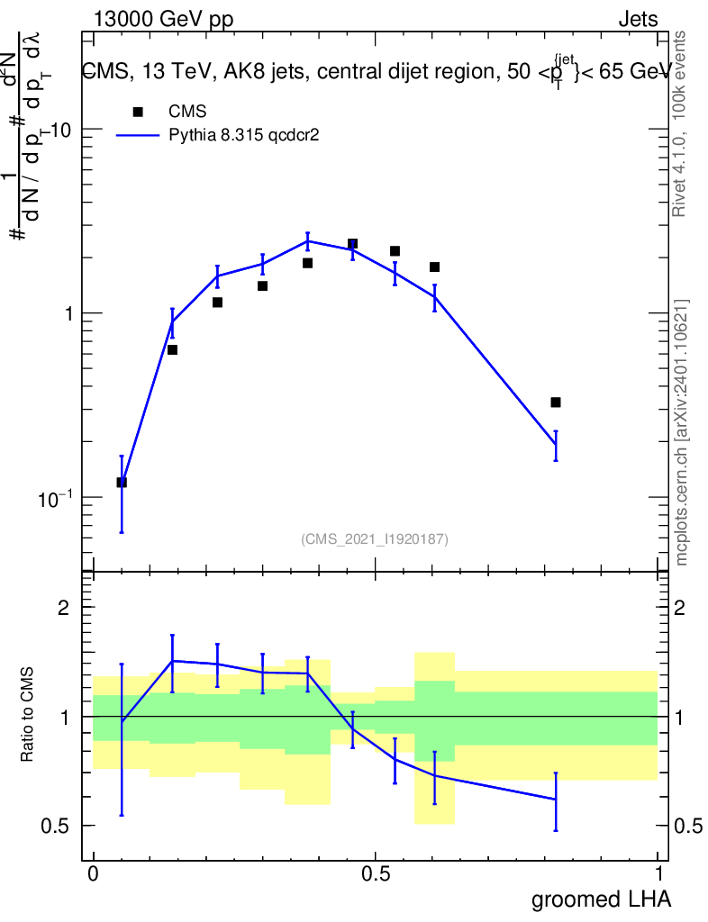Lines: data, pythia8 8.315 qcdcr2 |