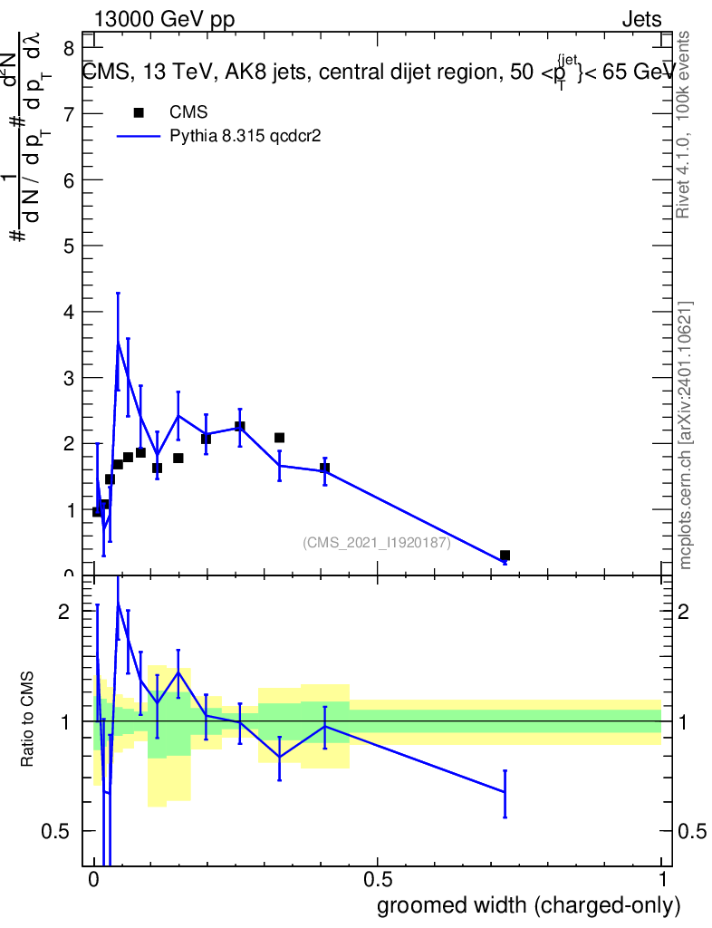 Lines: data, pythia8 8.315 qcdcr2 |