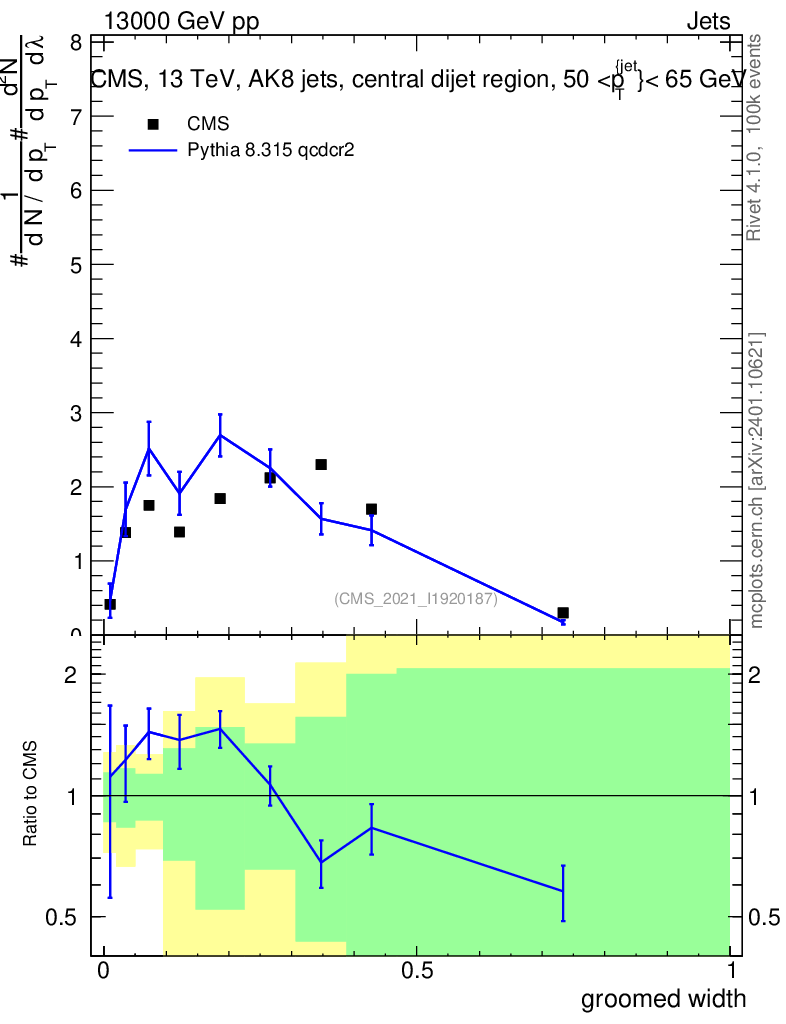 Lines: data, pythia8 8.315 qcdcr2 |