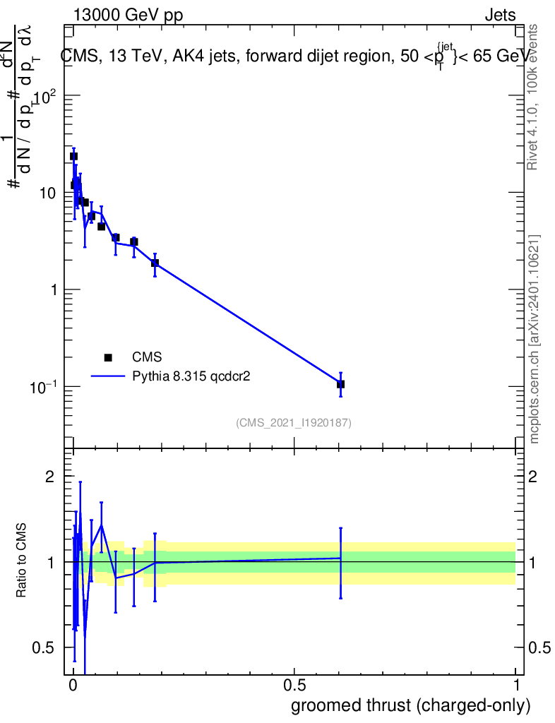 Lines: data, pythia8 8.315 qcdcr2 |
