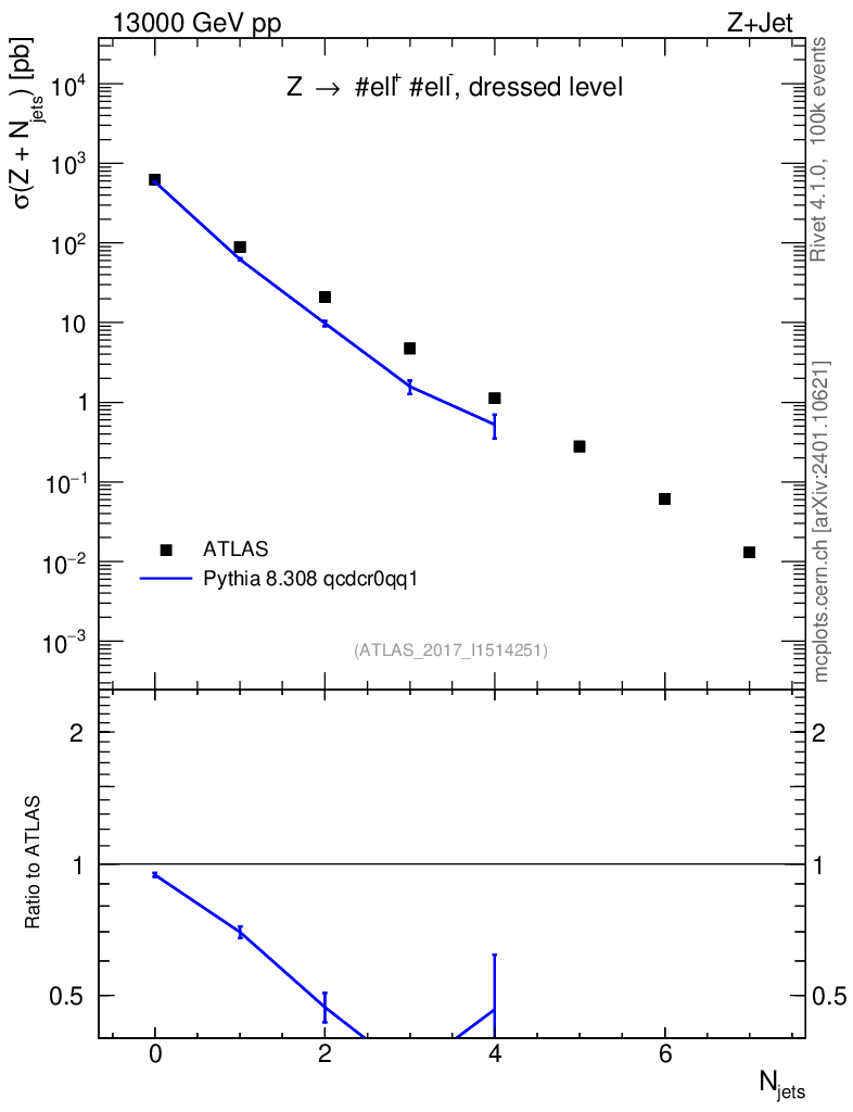 Lines: data, pythia8 8.308 qcdcr0qq1 |