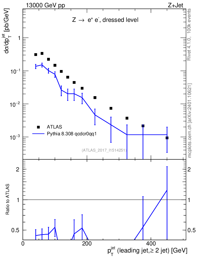 Lines: data, pythia8 8.308 qcdcr0qq1 |