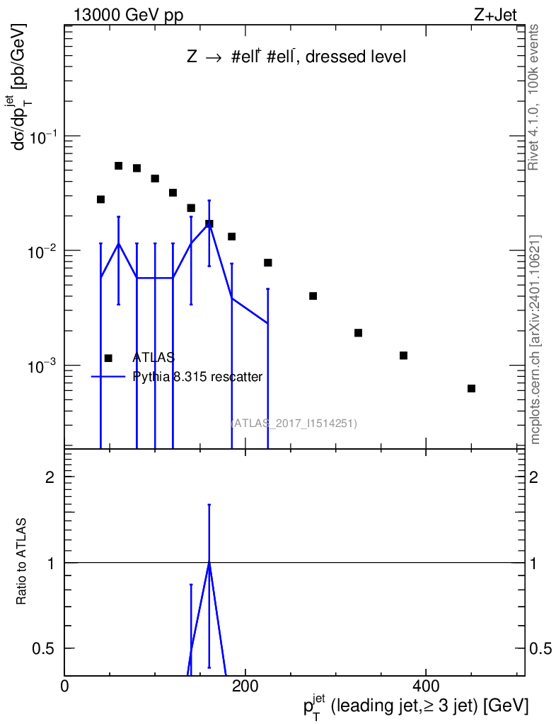 Lines: data, pythia8 8.315 rescatter |