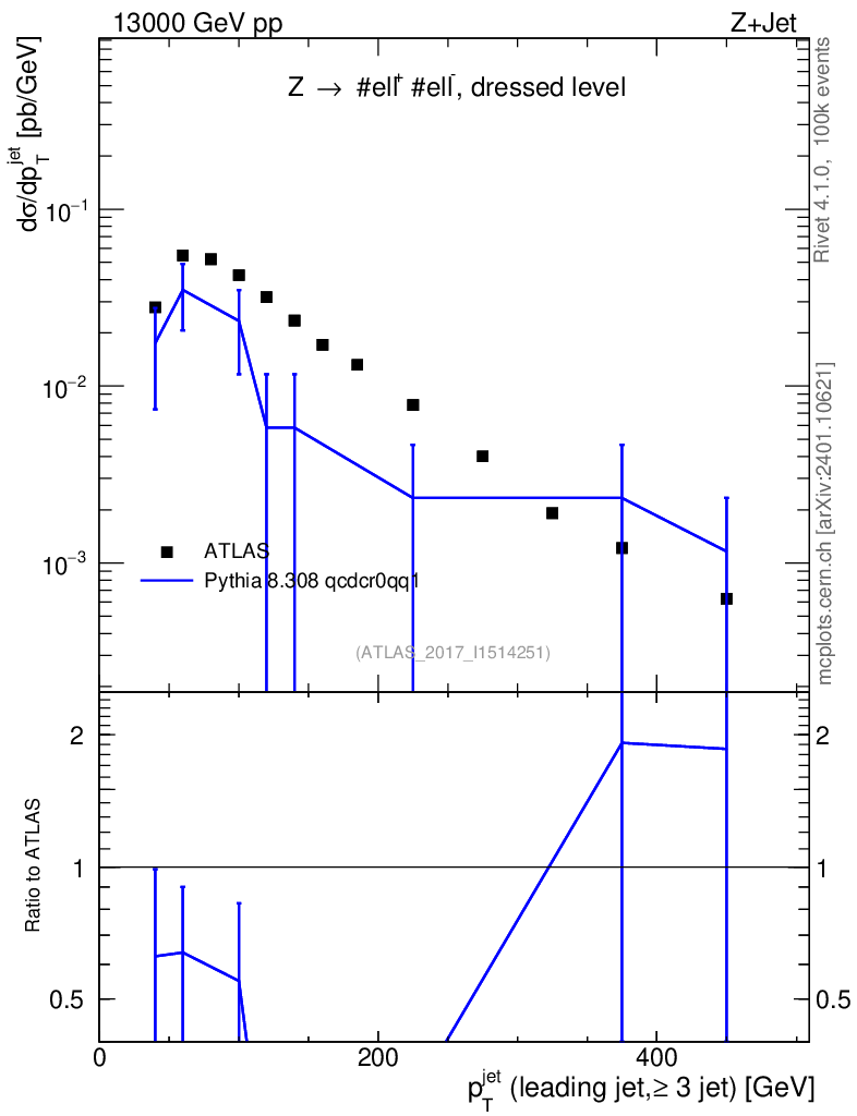 Lines: data, pythia8 8.308 qcdcr0qq1 |