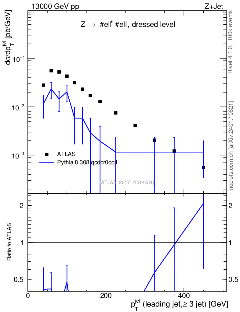 Lines: data, pythia8 8.308 qcdcr0qq1 |