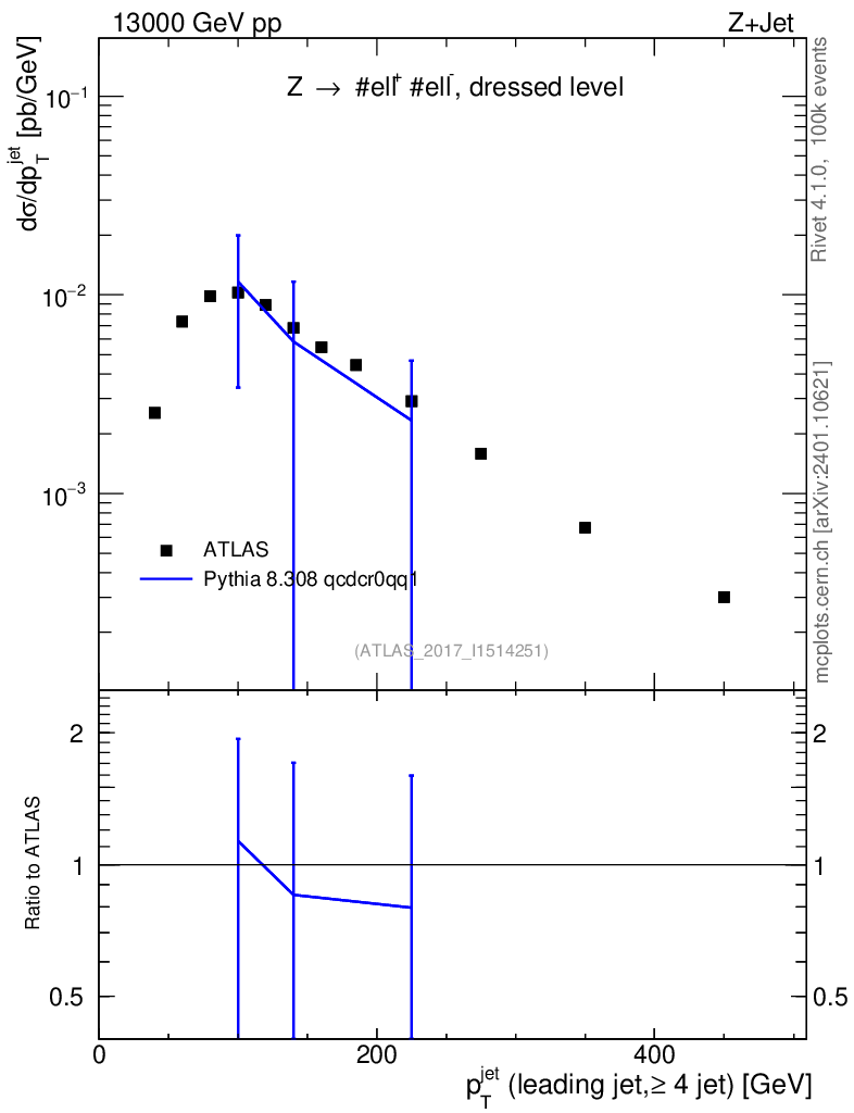 Lines: data, pythia8 8.308 qcdcr0qq1 |