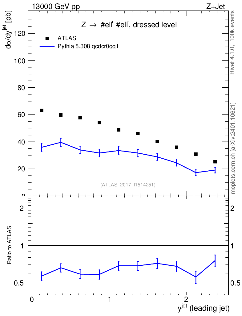 Lines: data, pythia8 8.308 qcdcr0qq1 |