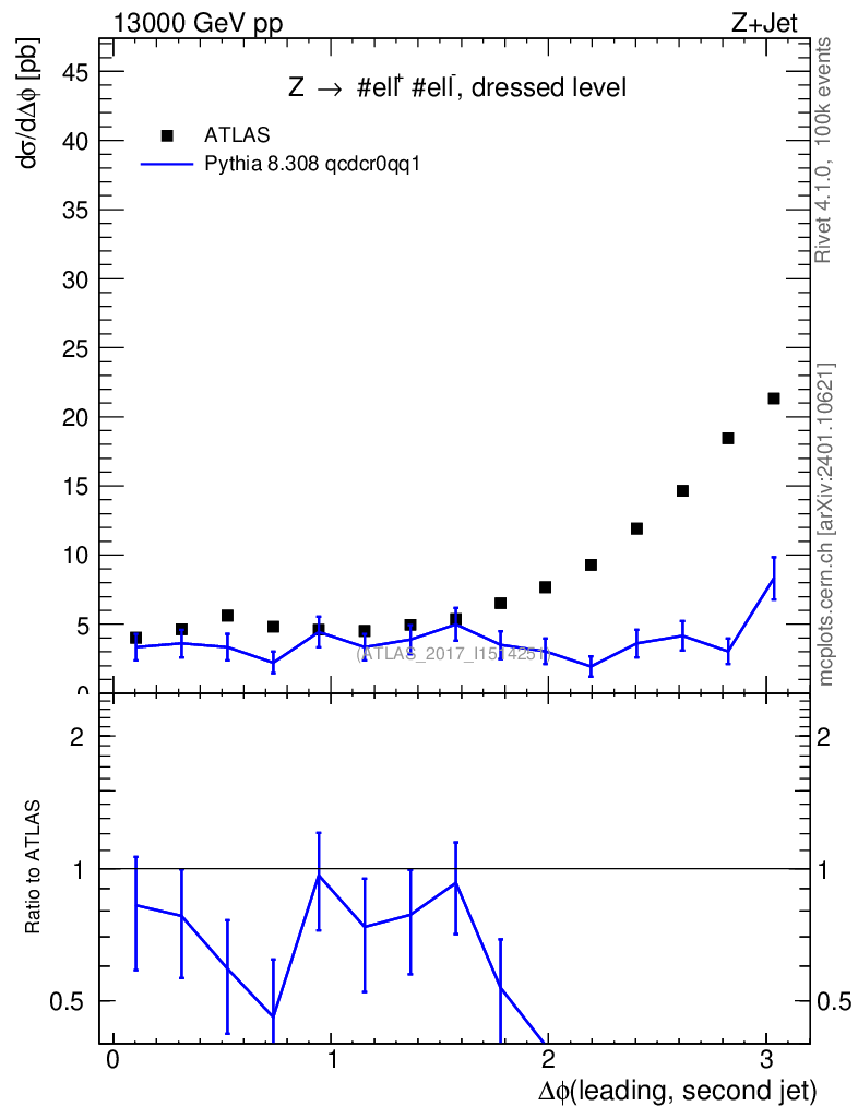 Lines: data, pythia8 8.308 qcdcr0qq1 |