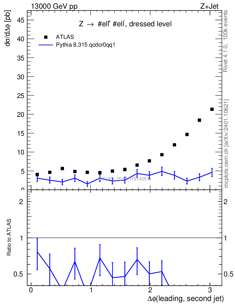 Lines: data, pythia8 8.315 qcdcr0qq1 |