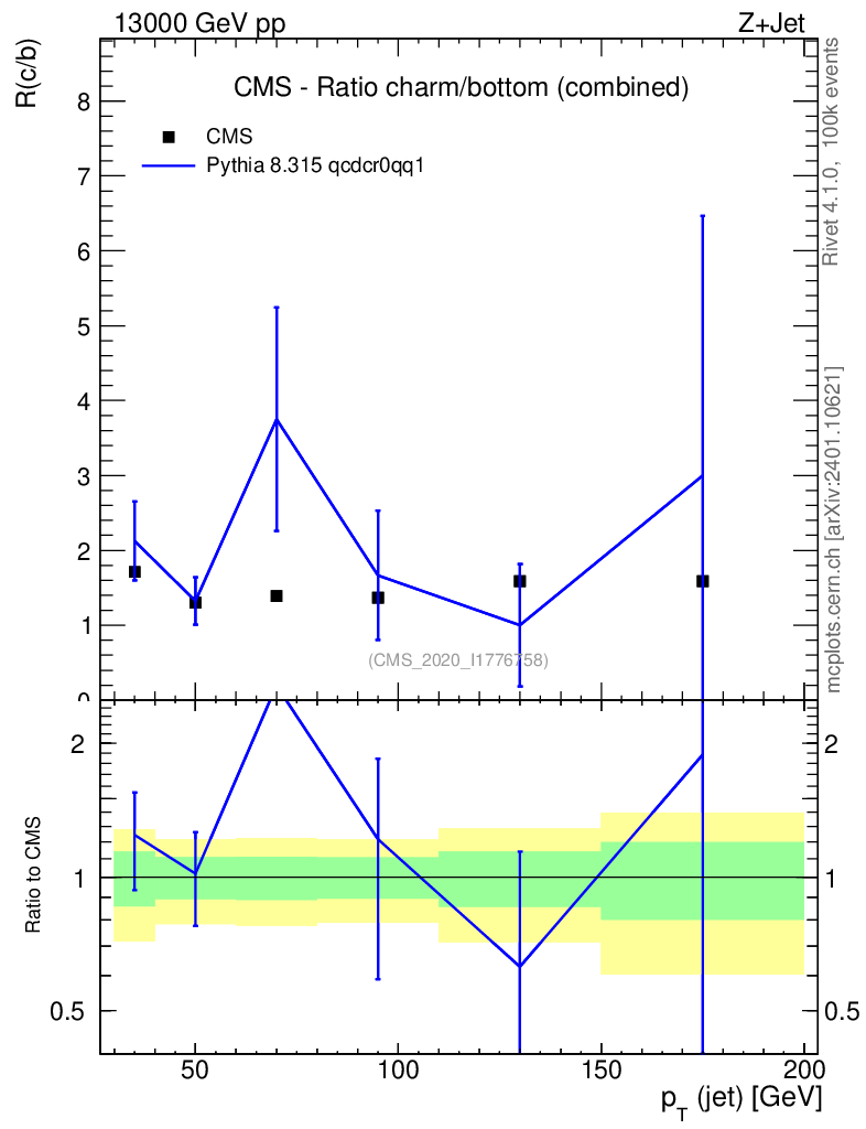 Lines: data, pythia8 8.315 qcdcr0qq1 |