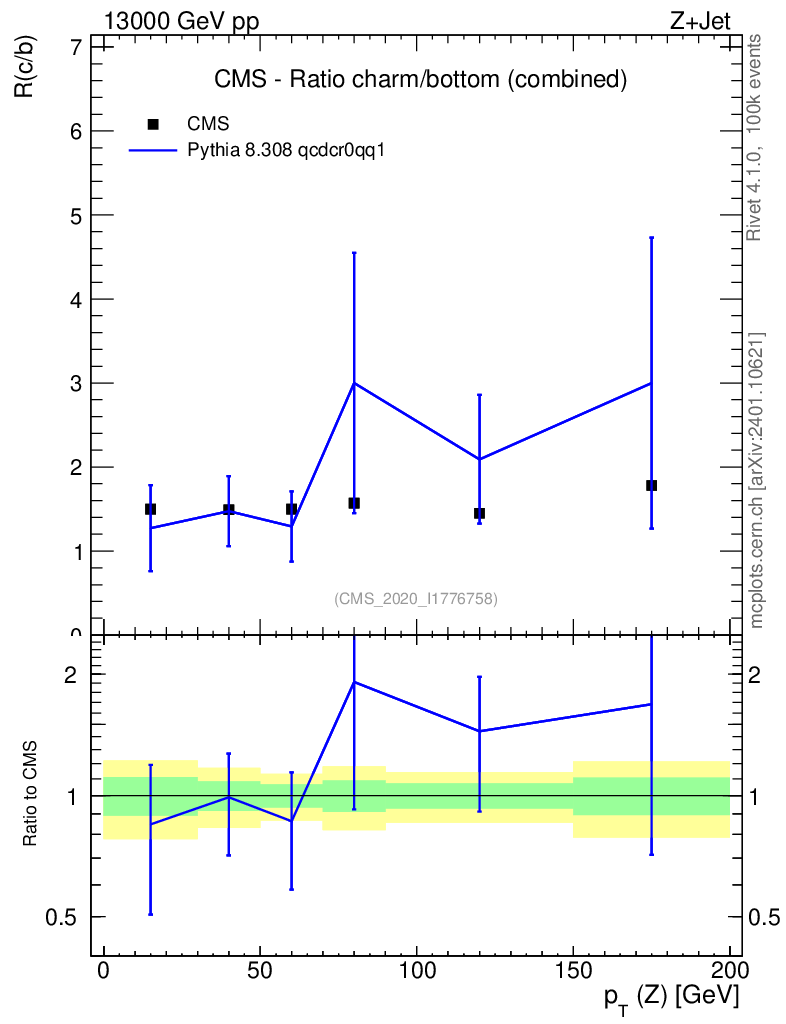 Lines: data, pythia8 8.308 qcdcr0qq1 |