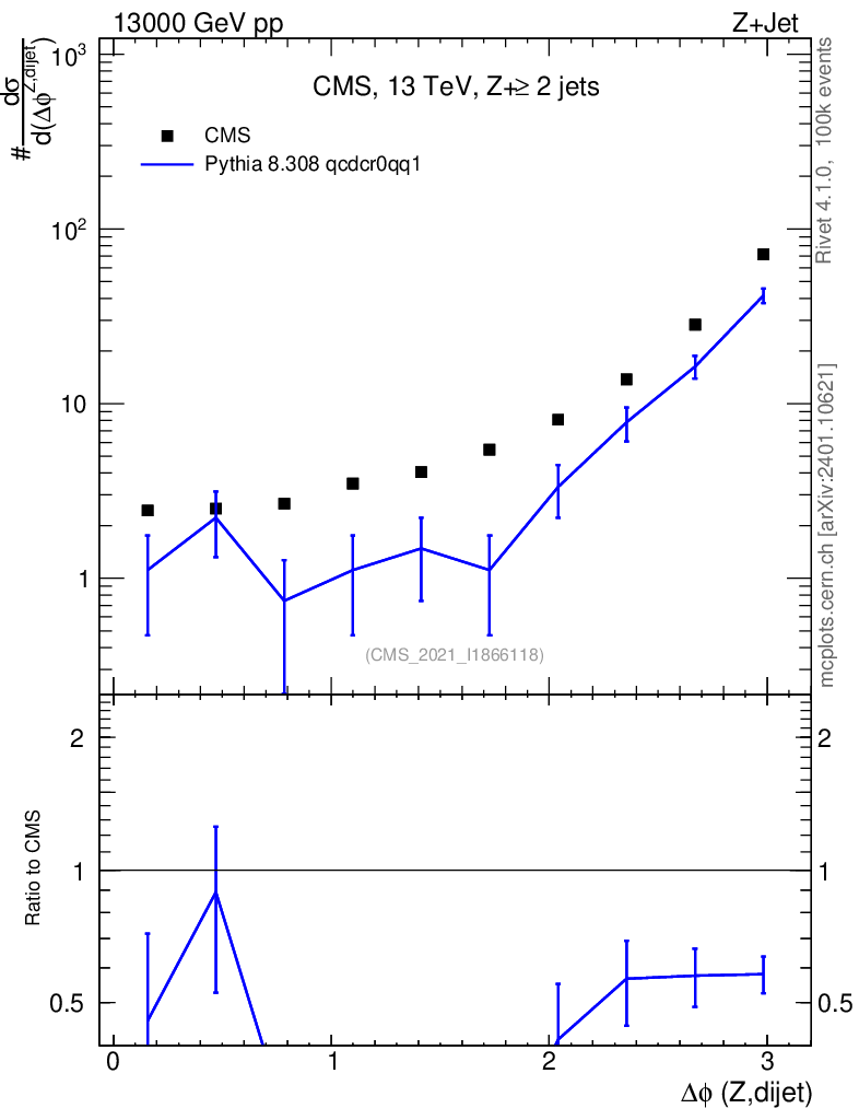 Lines: data, pythia8 8.308 qcdcr0qq1 |