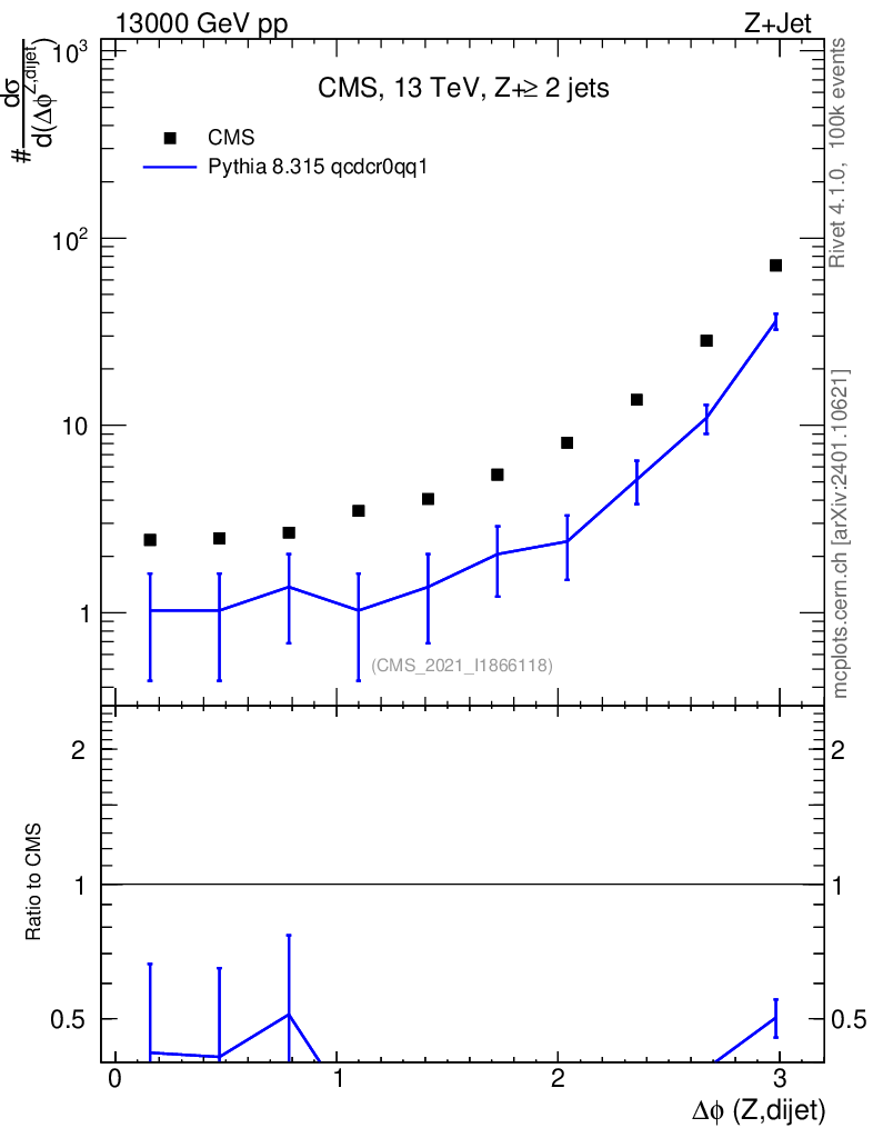 Lines: data, pythia8 8.315 qcdcr0qq1 |