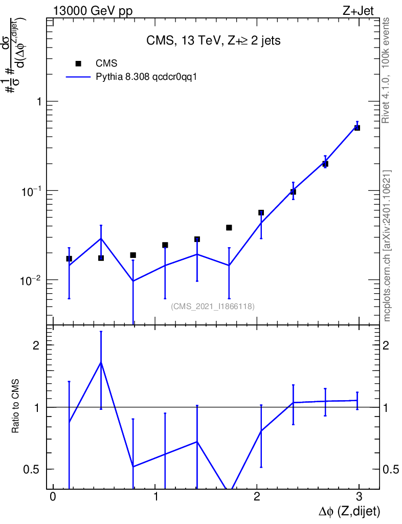 Lines: data, pythia8 8.308 qcdcr0qq1 |
